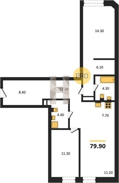 Площадь от 72.7 м2