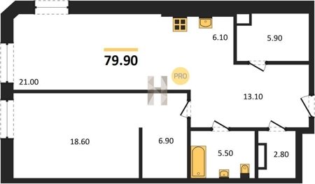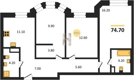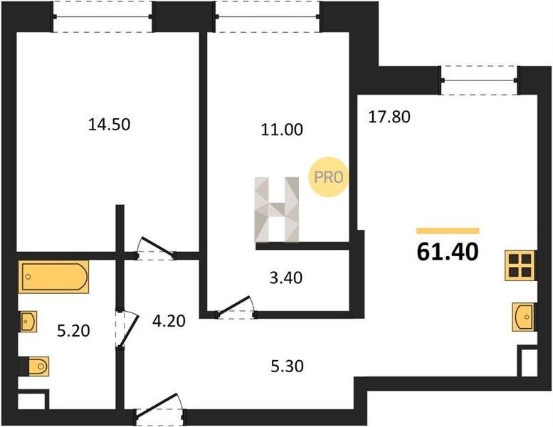 Площадь от 60.7 м2